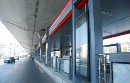 農業快速路BRT專用道沿地面道路中間兩個車道鋪設,站臺結合高架橋橋墩設計,采用中央島式設計模式,與地鐵一樣實現雙開門,可實現一站雙向免費換乘。