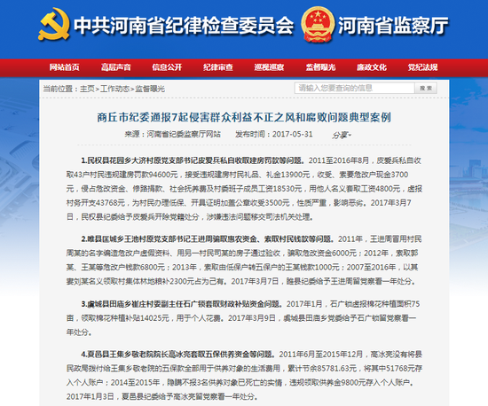 2011年6月至2015年12月,高冰亮沒有將縣民政局撥付給王集鄉(xiāng)敬老院的五??钊坑糜诠B(yǎng)對象的生活費用,累計節(jié)余85781.63元,將其中51768元存入個人賬戶;2014至2015年,隱瞞不報3名供養(yǎng)對象已死亡的實情,違規(guī)領取供養(yǎng)金9800元存入個人賬戶。2017年1月3日,夏邑縣紀委給予高冰亮留黨察看一年處分。