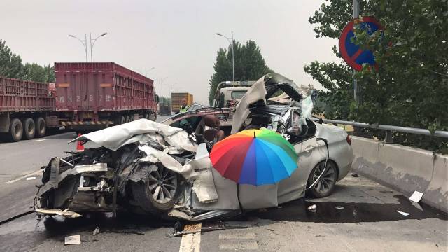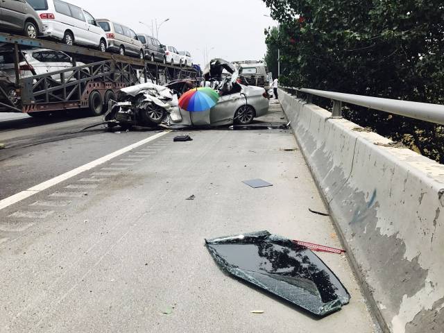 記者到達時,兩名私家車主已被120帶離現場,事故車輛和道路救援車輛都停在最右側車道和緊急車道,交警和路政正在現場處理。
