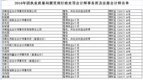 河南省財政廳2016年會計師事務所執(zhí)業(yè)質(zhì)量檢查工作已結(jié)束。近日,在官方網(wǎng)站公告檢查情況及處理處罰結(jié)果。