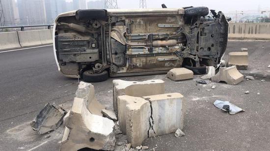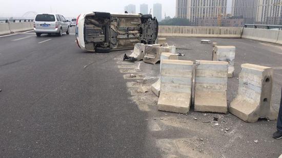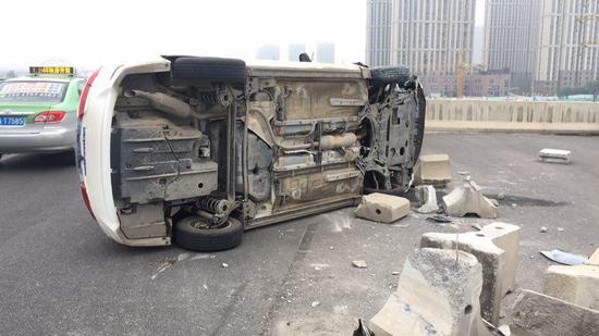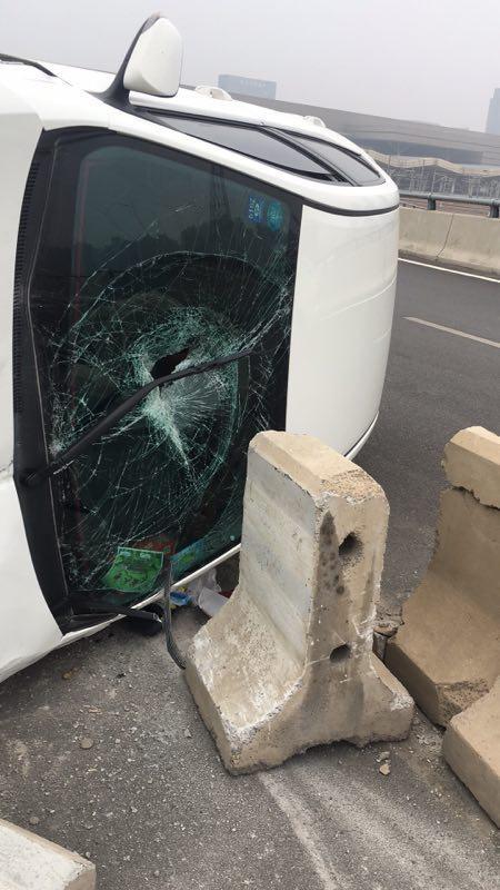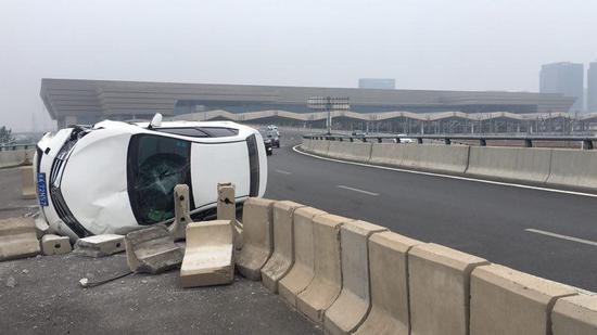 今天(7月27日)早上,鄭州東站高鐵站二層出發區往107輔道方向的下橋轉彎處,一輛白色私家車側翻。有網友表示:大早上的,這不是跑得快是“飛”得太低了啊……