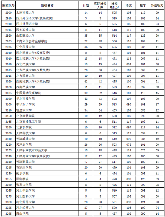 2017年河南本科二批各高校平行投檔分數線出爐