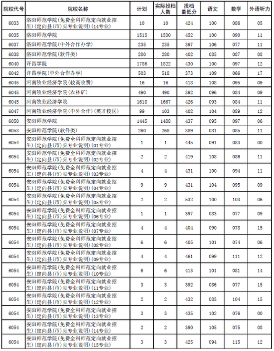 2017年河南本科二批各高校平行投檔分數(shù)線出爐