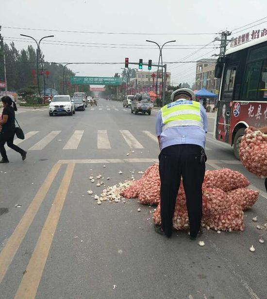 開車心急趕路,不知車上大蒜掉落,直至開封杞縣交警驅車追趕上車輛提醒車主才恍然大悟,望著失而復得的一袋袋大蒜,車主感激之情溢于言表,連聲向杞縣交警致謝,好人好事經過網友轉發,群眾和網友們紛紛為杞縣交警點贊。