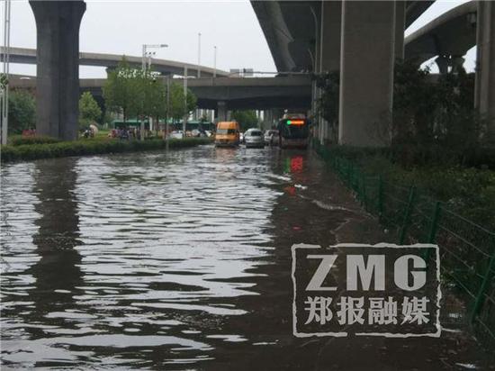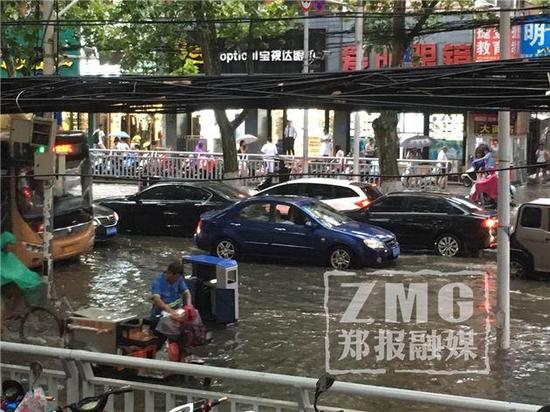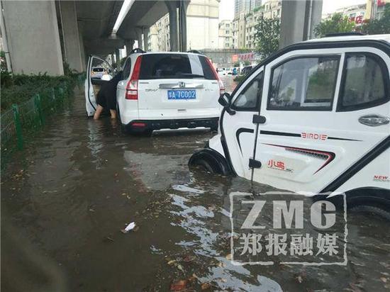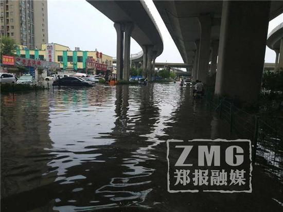 8月18日下午5點左右,西三環隴海路交叉口附近,北至潁河路,東至洛達路,南至汝河路,幾乎成了池塘。因水太深,近百輛車浮在水中,道路斷行。