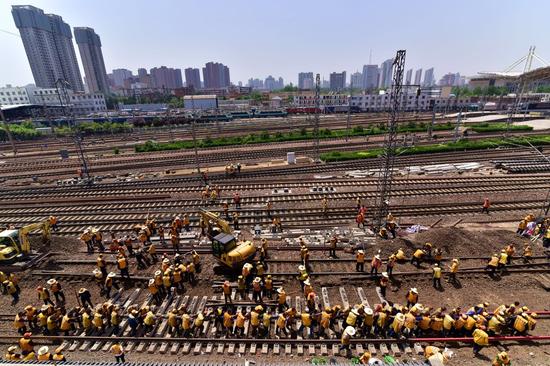 地處京廣、隴海鐵路干線交匯中心的鄭州車站建于1904年,至今已經(jīng)有113年歷史。該車站每日接發(fā)列車356列,繁忙時段平均每3分鐘就有一趟客車進站停靠,屬全國鐵路客運特等站之一,被譽為全國路網(wǎng)的“心臟”和“樞紐”。長期以來,為了確保全國鐵路的安全暢通,始終沒有安排集中整段時間對鄭州站木枕道岔進行徹底更換。