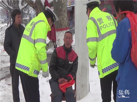 近日,受冷空氣影響,西峽境內再次迎來強降雪,大雪給居民生活生產造成了嚴重影響。1月26日下午,西峽縣公安局交警大隊民警在東環路與仲景路口執勤時,發現一名40多歲的男子躺在仲景路上的雪堆里向過往車輛揮手,嘴里喊著“救命”。地上到處都是積雪,天上還飄著雪花,加上該路段車流量較大,為避免發生危險,民警趕忙上前扶起該男子,發現其喝酒喝醉了。