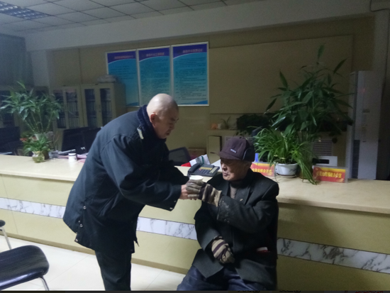 “這么冷的天,老人睡在大街上,很容易凍病的。”隊員趙永恩說,為避免老人發生意外,他們上前喚醒老人,將其回到中隊值班室取暖。老人可能在外面凍了很長時間,起初有些神情恍惚,喝了一杯熱水后,情緒才穩定下來。