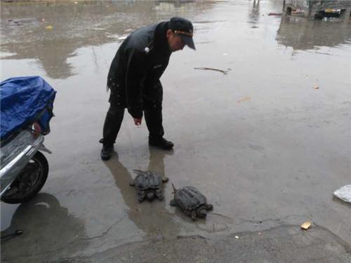 3月17日下午5時30分左右,在鄭州市建設路與西三環交叉口北側,一名男子挑著兩只十幾斤重的“神龜”,在路邊沖著行人叫賣。路經此處的馮女士聽說兩只龜是男子從施工工地里挖出來的百年“神龜”,擔心被貪嘴的人買走吃掉,便通過微信轉賬的方式,花900元錢將兩只“神龜”買下,想帶到西流湖里放生。由于兩只龜個大體重,劉女士帶著十分吃力,引起路人的圍觀。一名認識鱷龜的熱心路人聽說她要到西流湖放生,便告訴她這種龜屬于外來物種,會破壞本地的生態平衡,不能放生。就在馮女士猶豫之時,三官廟辦事處巡防隊員王建發和隊友巡邏到這里,當即阻止馮女士放生鱷龜。