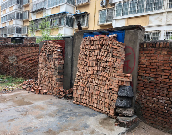 隨后,大河報·大河客戶端記者繞到祥和嘉苑二期,走到與一期相隔的這面墻邊,赫然看到這些江湖傳說中的23個門。有的門被磚臨時壘著,有的門已被封死抹好了水泥。