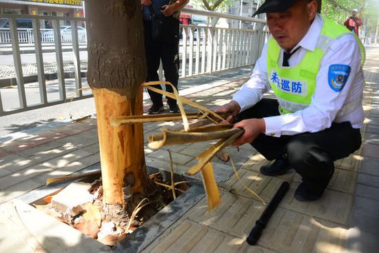 “假如居民發(fā)現(xiàn)這些樹的枝葉存在安全隱患或影響采光,可以通知綠化部門前來修剪處理和移除,不該私自毀樹,畢竟,一棵樹長(zhǎng)這么大很不容易。”王建勇說,這種剝皮毀樹的行為是違法的,他們已經(jīng)上報(bào)園林執(zhí)法部門對(duì)此進(jìn)行調(diào)查處理,一旦找到毀樹者,將移交警方處理。