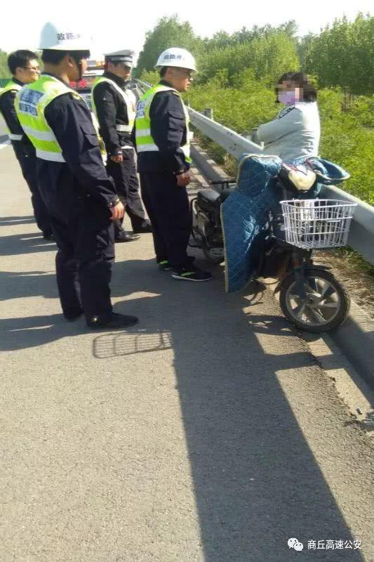 4月22日下午,商丘永城市一莽撞農村婦女為抄近路,竟然不顧生命危險,騎著一輛電動車在車流中逆向穿行,險象環生!后在商丘高速交警和路政人員的教育和引導下,該婦女才駛下高速公路,解除了一起安全隱患,避免了一場悲劇發生。