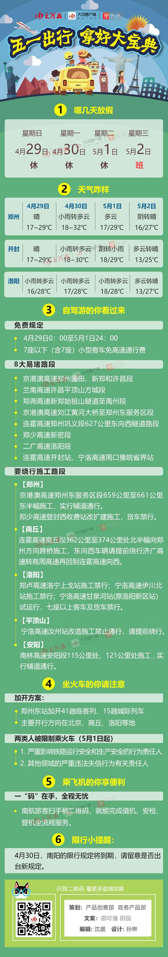 要特別注意假期最后一天5月1日下午返程高峰,尤其是下午16時以后返鄭下站后城區(qū)道路車輛驟增極易擁堵,注意提前返程,錯峰返程。