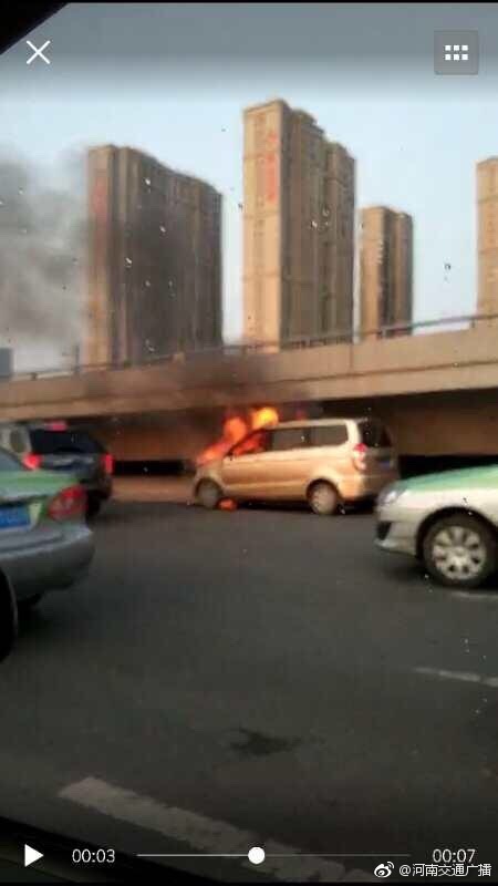 4月27日下午18點多,有車友反映,107東三環南向北過了東站北街有火情(一輛面包車發生自燃)。目前119反饋已經到達現場處理。
