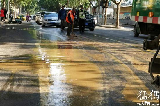 4月27日清晨,鄭州市華山路中原路交叉口偏北約300米處,大量的泥漿覆蓋著路面,不斷有行人被“撂倒”。