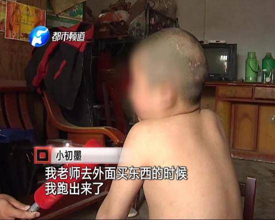 本以為孩子在外能好好學藝,沒想到,初墨父親在今年3月28號,突然接到內蒙古包頭警方電話,說孩子在包頭出事了。小初墨父親連夜趕到包頭,卻在當地救助站,見到了渾身是傷的孩子。