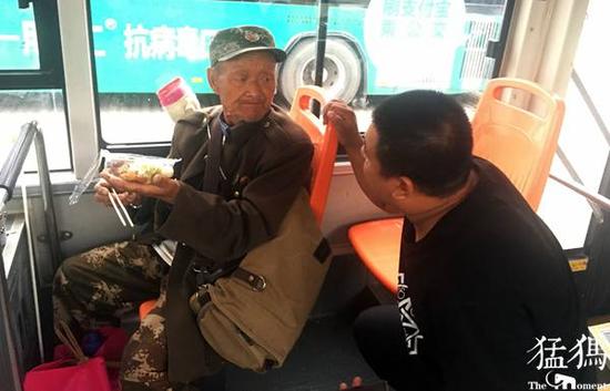 車(chē)輛很快到了終點(diǎn)站,老人依然坐在座位上不下車(chē),劉廣偉先給老先生拿來(lái)加餐,又買(mǎi)了一瓶水,老先生此時(shí)打開(kāi)了話(huà)?,但問(wèn)到家是哪里的、電話(huà)多少、叫什么名字,老人卻不愿意說(shuō)。