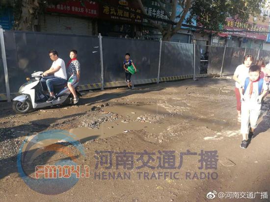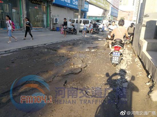 此前有車友反映,鄭州昌北路鳳凰雙語小學門前道路積水嚴重。