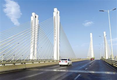 昨日,北三環(huán)龍湖引渠橋上空蔚藍(lán) 記者 周甬 圖