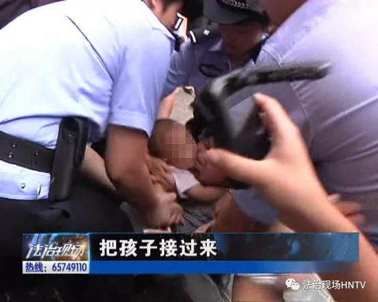 考慮到這名女子懷抱孩子,執行干警一直在耐心的說服教育,可是突然間,女子抱著孩子作出瘋狂舉動。
