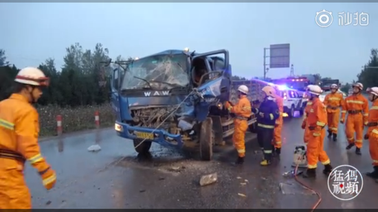 9月25日06時08分,鶴壁市消防支隊淇縣大隊接到群眾報警稱,位于107國道北陽鎮超限站一輛小貨車追尾,小貨車司機被困駕駛室內。接到報警后,淇縣大隊云夢中隊迅速出動2輛消防車、12名指戰員迅速趕往事故現場。