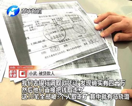 事到如今,小武他們有苦難言,他們發現,在其中一張取款單據上寫著“馬曉璐代”的字樣,這個馬曉璐到底是何許人也?《都市報道》記者要求與馬曉璐本人見面,想當面了解關于以別人名義貸款的事情,沒想到他竟然答應了。而當記者問到以別人名義辦貸款的事時,馬曉璐卻一口否認。