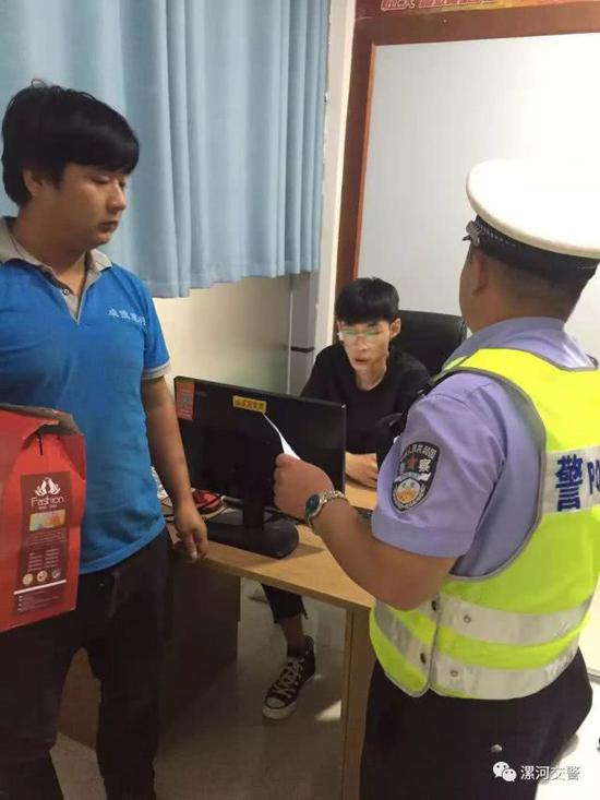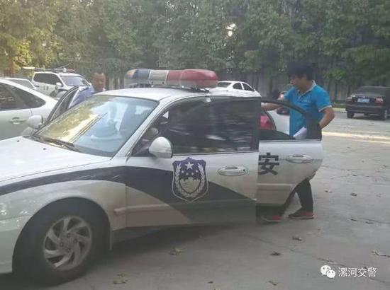 10月1日17時,漯河市公安局天橋交管巡防大隊民警趙勇、周民忠在燕山路口執勤過程中,一青年男子走到民警面前求助。