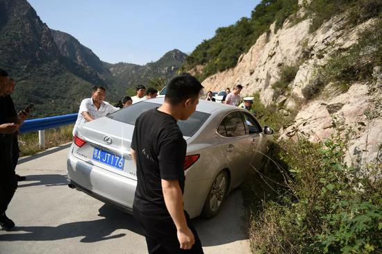 13時30分許,新密市公安局交警大隊民警周偉偉等人按照國慶交通安保部署在景區道路巡邏,當巡邏至伏羲山山區道路紅石林路段時,發現一輛卾AJT176號銀灰色轎車不慎沖入路邊溝,右前輪懸空在路邊溝里,車上的駕駛員和一名女乘客不知所措的呆在車里,只能容一輛車通過的道路立馬擁堵起來。
