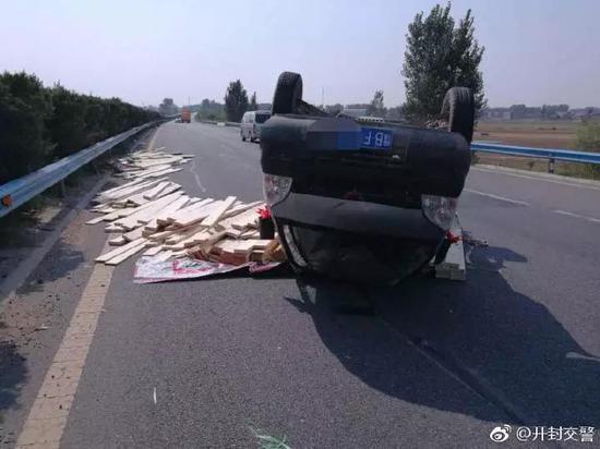 2018年10月3日,開封高速支隊民警及時救助一輛爆胎側翻貨車,及時挽回司機損失。