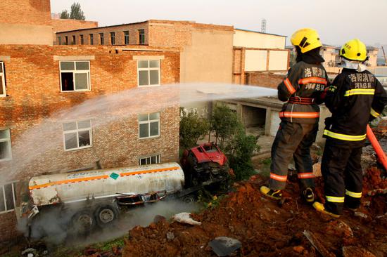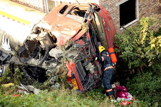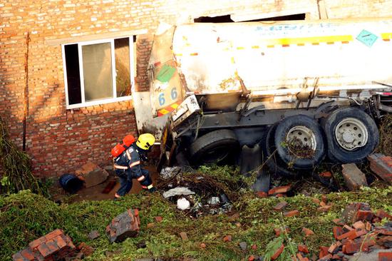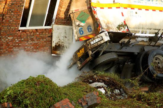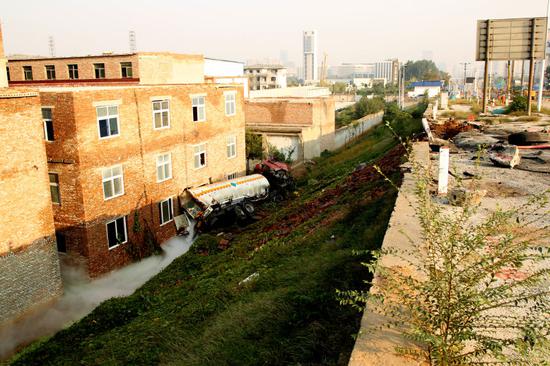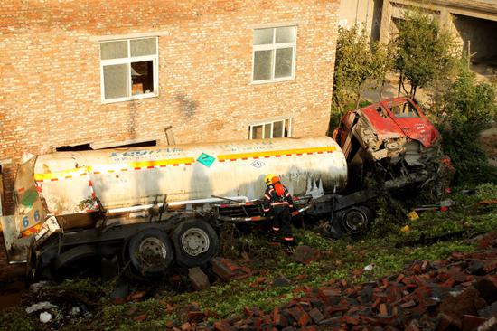 消防官兵經與報警人確認,槽罐車司機已被120拉到醫院救治(輕微受傷)。