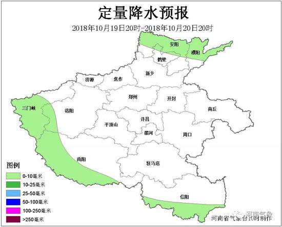 20日,西部、南部、北部多云轉陰天,其中三門峽、安陽、濮陽、南陽四地區和洛陽、信陽兩地區南部部分地區有小雨或零星小雨;其它地區多云。