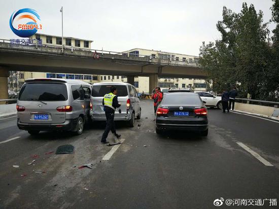 今天(10月20日)早上7點多,鄭州河醫(yī)立交二層轉盤發(fā)生一起5車事故。截止8:20,本臺記者佑龍在現場看到,其中一輛黑色私家車左前部受損較為嚴重,車身凹陷,除了這輛車外,其他車輛受損都不太嚴重,事故當中沒有人員受傷,目前交警正在處理事故,現場2條車道通行,預計15分鐘左右事故車輛即可撤離。(河南交通廣播記者:朱佑龍)