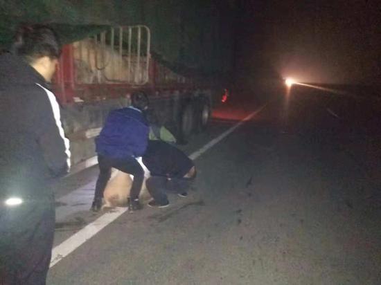 原標(biāo)題:凌晨高速上貨車司機(jī)下車捉豬 后車撞豬保人致車輛損毀
