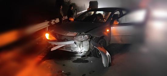 11月12日凌晨,安陽轄區(qū)南林高速開始起霧,一輛裝著一車活豬的重型貨車行駛到南林高速K77公里十700米時(shí),一頭豬從車上掉落路面,司乘3人下車捉豬過程中。緊隨而至的一輛小型客車躲閃不及,撞到豬后失控,又撞到中央隔離墩上,導(dǎo)致車輛損毀,車上2個(gè)人受到安全帶和安全氣囊的保護(hù)沒有受傷。