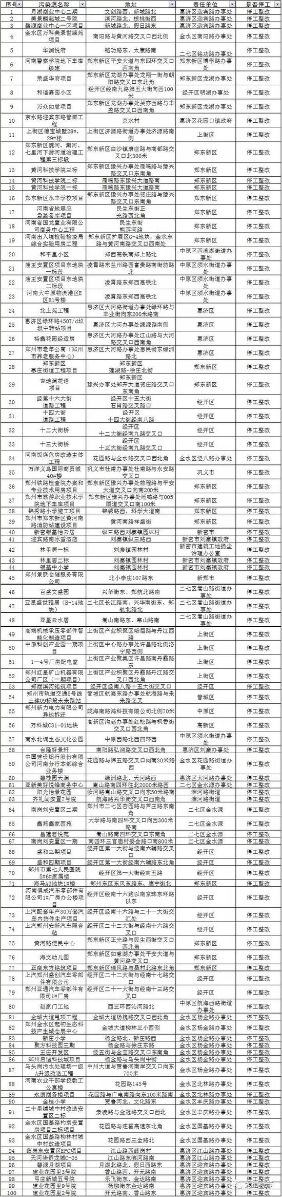 11月14日,記者從鄭州市環保局了解到,按照秋冬季大氣污染防治攻堅動員會要求,近期,市控塵辦組織對全市施工工地“八個百分之百”落實情況及工地完善信息情況進行了專項督查。對存在視頻監控不到位、施工圍擋不到位、主要道路硬化不到位、車輛沖洗設施不到位等硬件不到位問題及工地信息數據不完善問題,依據“一票停工制”有關規定,共計被實施停工整改的工地910個。鄭州市環保局對停工整改的工地名單進行了通報,并邀請群眾監督。