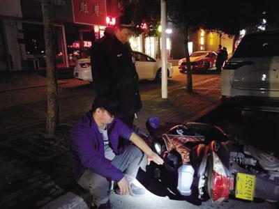 昨日凌晨1時許,金水區鳳凰臺街道巡防隊員宋新國等人駕駛巡消車巡邏至建業路鳳鳴路口向北約200米處時,發現路上有輛倒地的電動車,地上還坐著一個戴帽子的男子,見有情況隊員趕緊下車查看。