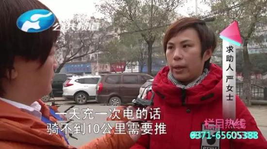 鄭州的嚴(yán)女士求助《百姓315》欄目,說她11月底給新買的電動(dòng)車上了牌,誰知上過牌照之后,卻發(fā)現(xiàn)電動(dòng)車跑不遠(yuǎn)了!