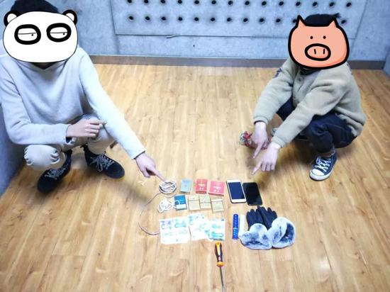 兩名頭帶連衣帽,身材瘦小的少年男子被納入偵查視線,兩名少年在市區華夏路、迎賓南路連續實施砸車窗行為,于29日凌晨消失在華夏路。偵查民警經過研判分析,兩名少年結伴作案在網吧落腳的可能性較大。民警根據兩名少年的截圖,在市區網吧進行排查,于29日中午在市區一網吧內將兩名少年抓獲歸案,并當場搜出兩部手機、一把作案用的螺絲刀、兩部強光電筒、香煙及80元現金。
