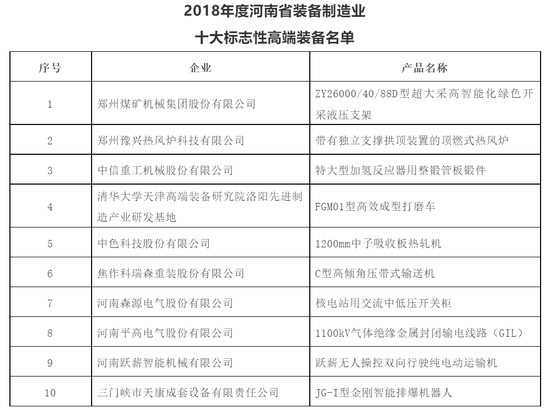 原標題:2018年度河南省裝備制造業十大標志性高端裝備名單出爐