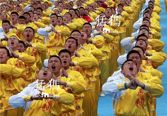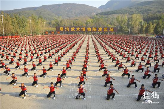 為了保證演出質量,學校對演員也進行了篩選,特別是6000多位主要演員,都是習武三年以上,功底扎實的學生,身高都在1米68至1米75之間。