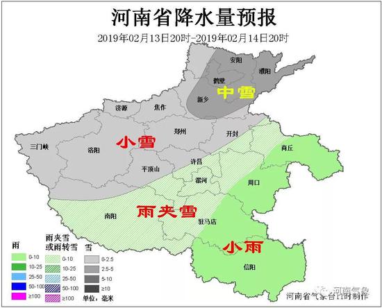 13日到14日白天,黃河以北和三門峽、洛陽、鄭州、平頂山、許昌五地區及開封、南陽、漯河三地區北部有小到中雪,局部大雪;淮河以南有小到中雨;其它地區雨夾雪或小雪。