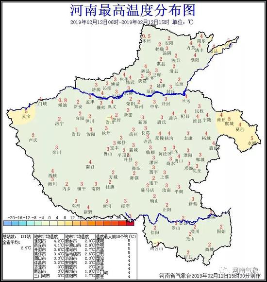全省平均最高溫度2.9℃,除了東部氣溫略高在4-5度,其他大部地區氣溫在2-3度之間。