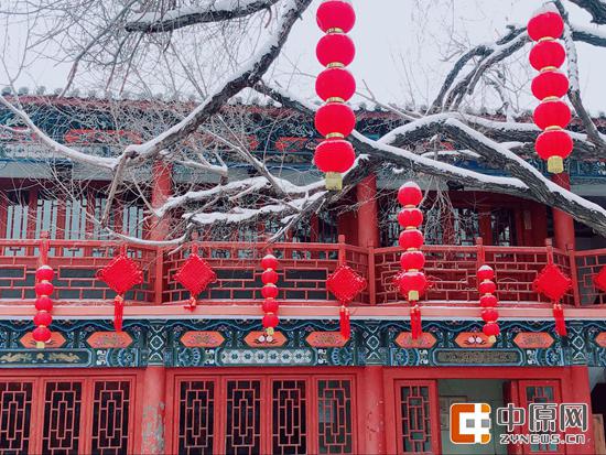 進入到城隍廟內,記者看到有許多攝影愛好者拍攝記錄下這里的醉人景色,一位攝影愛好者告訴記者,這里的紅墻神似故宮,大雪降臨更是“畫龍點睛”,白雪紅墻的顏色反差,拍出來一定很贊。