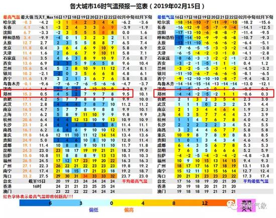 像是鄭州 2月16日最高氣溫4℃,17日5℃,18日2℃