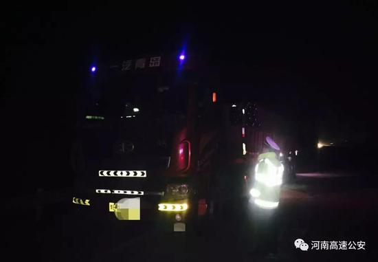 2月26日23時許,安陽高速交警支隊二大隊夜班巡邏民警巡邏到南林高速91公里處,發現應急車道內停著一輛豫E牌照重型半掛貨車,車上滿載一車鋼管,沒有擺放任何警示標志。