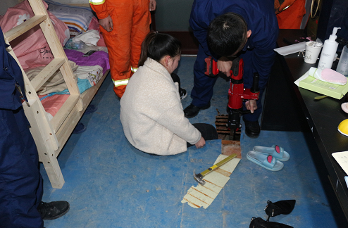 到達(dá)現(xiàn)場(chǎng)后發(fā)現(xiàn),一名女子正坐在宿舍地上,而右腿緊緊卡在室內(nèi)下水道口處,不得動(dòng)彈。據(jù)知情人介紹,該女子腿部被卡時(shí)間已經(jīng)不短,不及時(shí)營(yíng)救很可能造成不可逆轉(zhuǎn)的傷害?,F(xiàn)場(chǎng)消防指戰(zhàn)員立即安撫被卡女子激動(dòng)的情緒,利用設(shè)備對(duì)女子腿部進(jìn)行支撐、墊護(hù)保護(hù),以免造成二次傷害。保護(hù)措施做好后,迅速使用電動(dòng)剪擴(kuò)器對(duì)下水道的鋼筋進(jìn)行擴(kuò)張,5分鐘后,成功將女子救出。