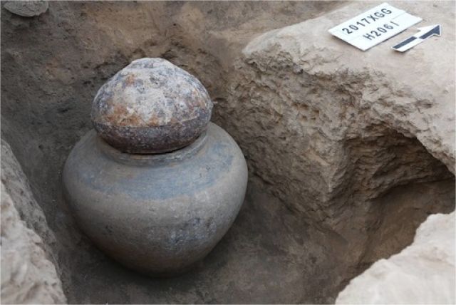 這是官莊遺址發現的漢代鐵器窖藏坑(新華社發)考古人員先后在遺址內發現了外壕和南北相連的大城和小城,并在大城中北部發現了兩周時期的鑄銅、制陶、制骨手工業遺存。其中,鑄銅作坊區占地2000多平方米,已出土約3000塊陶范,鑄造青銅器種類多樣,有禮樂器、兵器、車馬器等。制陶作坊清理出陶窯、泥料坑,并出土了陶拍、陶墊及陶器殘次品等。