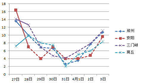 據省氣象臺預報,28日夜里到29日白天,全省自北向南轉偏北風4~5級,局地伴有浮塵、揚沙。明天夜里到4月1日全省氣溫維持較低水平,其中31日早晨北部、東部、西部山區最低氣溫0~2℃;南部3~5℃;其它地區2~4℃;4月1日早晨西部、北部大部分地區最低氣溫仍在4℃以下。4月2日起,全省氣溫開始逐漸回升。