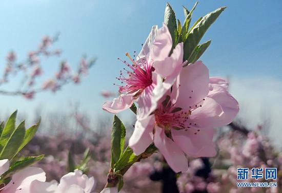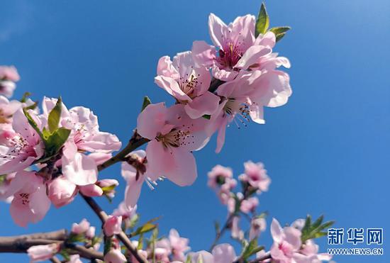 近日,河南滎陽市王村鎮段坊村百畝桃花迎春盛開。游客伴著芬芳花香,徜徉花海,縱情春日好景,盡享田園風光。新華網發(張建華 攝)