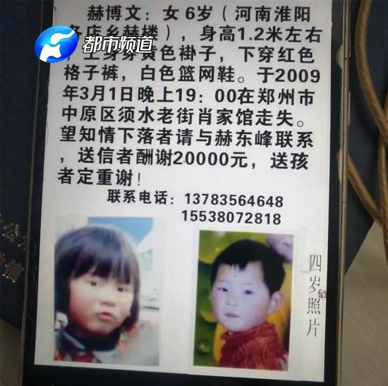 盧麗和赫東峰夫妻倆,在鄭州須水鎮須水村經營一家手機店。2009年3月1日,他們剛滿6歲的女兒赫博文突然走失,直到今天,她也沒能回到父母身邊。
